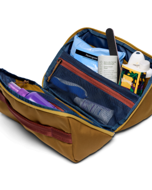 Thanks to a plethora of pockets. everything has its place in the Viaje Toiletry Kit. This sturdy. 100% recycled dopp kit features plenty of zippered pockets and sleeves to keep makeup. medications. and more organized for some seamless PTO.
